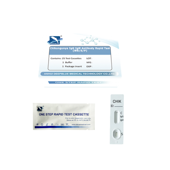 ** Chikungunya lgG/igM Cassette (Whole Blood/Serum/Plasma) is a rapid chromatographic immunoassay for the qualitative detection of IgG and/or lgM to Chikungunya (CHIK) in whole blood, serum or plasma to aid in the diagnosis of Chikungunya infection